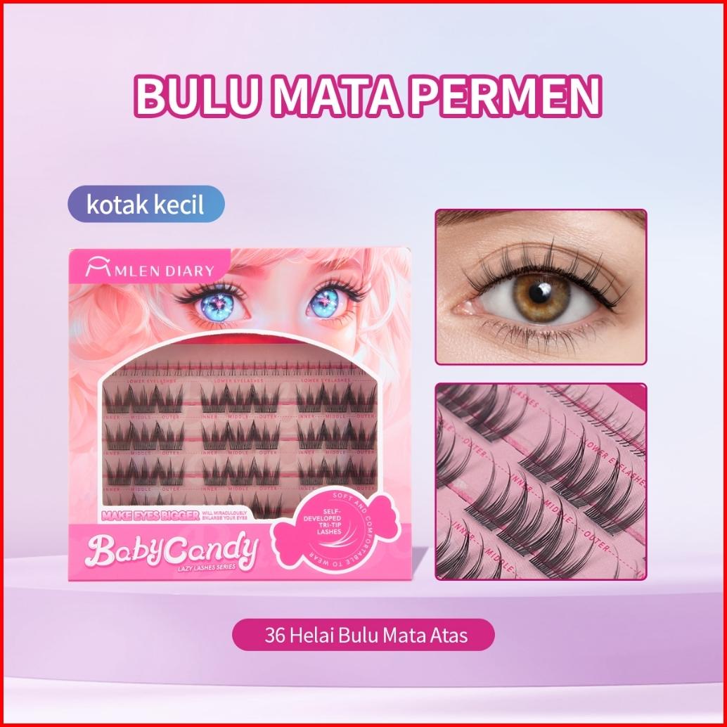 Mlen Diary Bulu Mata Baby Candy Eyelash Permen Desain Tri-tip Bulu Mata Palsu Panjang 10-13mm Bulu Mata Eyelash Extensio