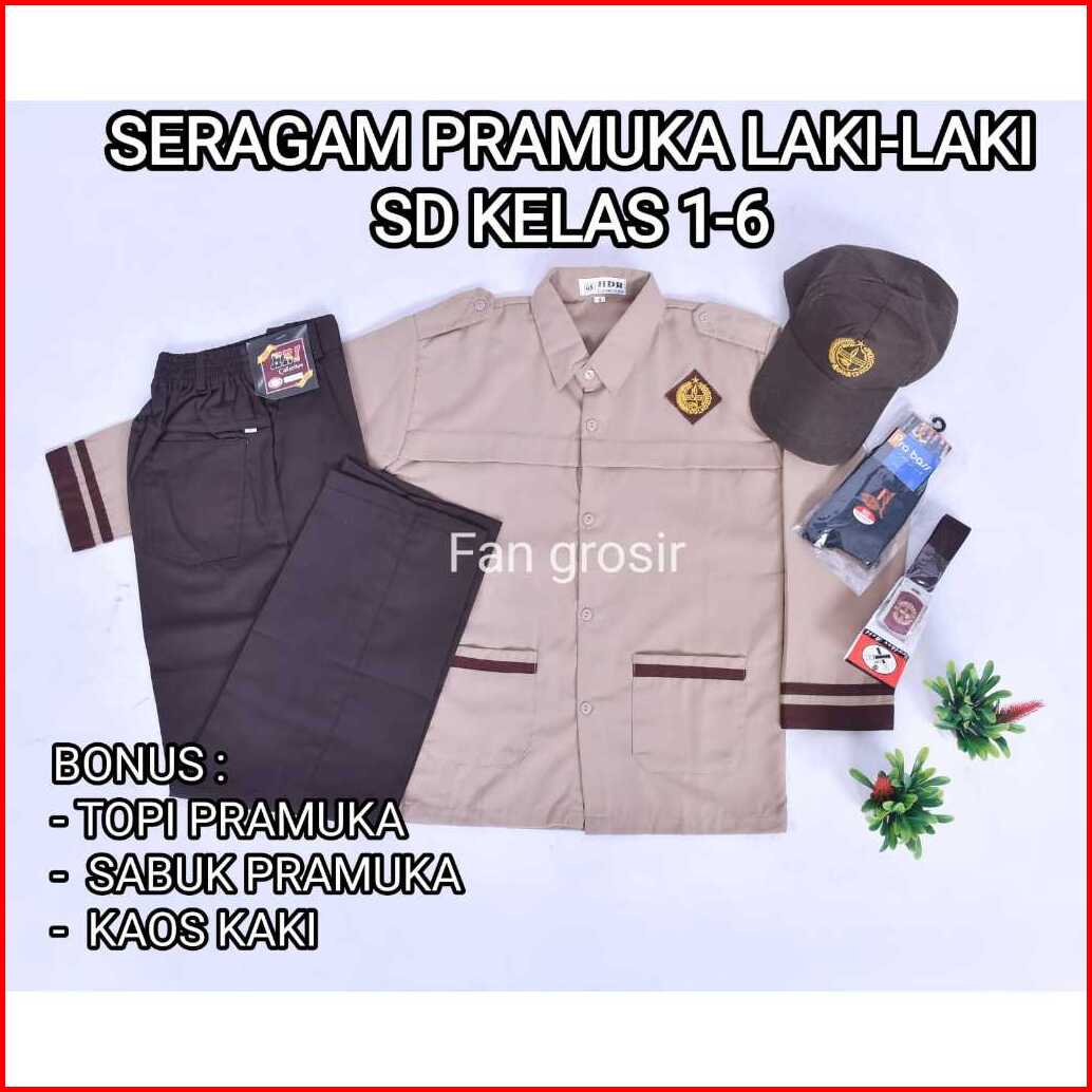 Setelan Seragam Sekolah Sd Anak Laki-laki Panjang Kelas 1-6 Bonus Topi Kaos Kaki Sabuk Dasi