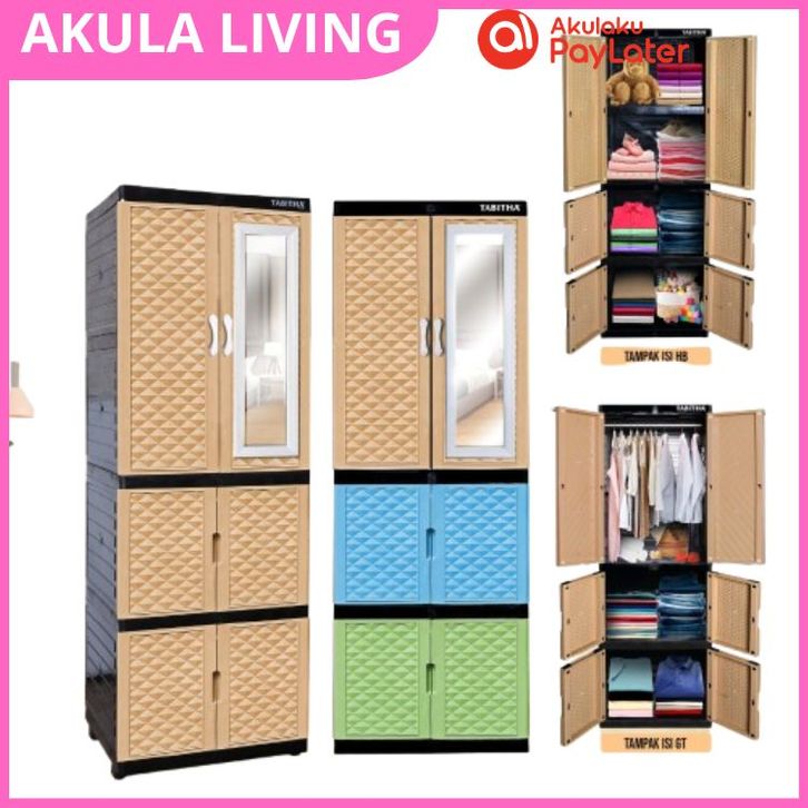 Lemari Pakaian Plastik/TABITHA Lemari Plastik GANTUNG RAK FULL KUNCI KACA CERMIN MURAH LS2PS GT HB GEMINI