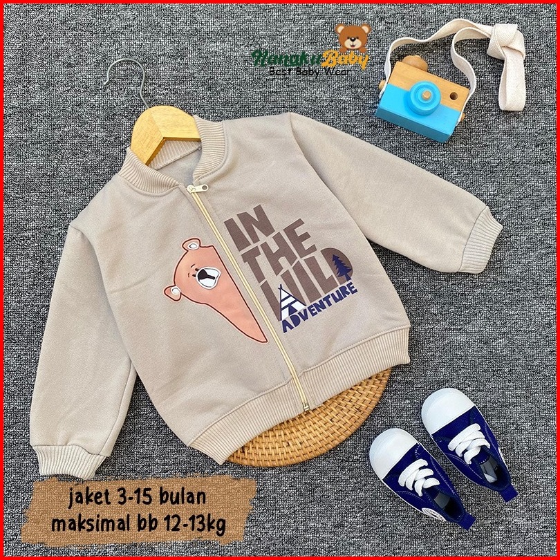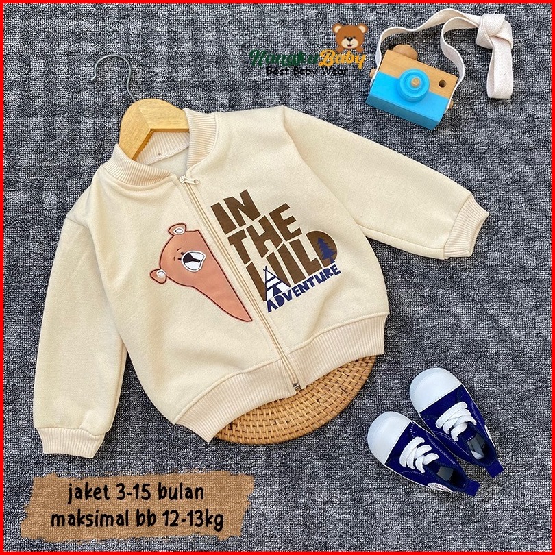 Nanaku Baby - Jaket Bayi Motif Adventure Jaket Bayi Hangat Crew Neck Bayi Lucu Jaket Risleting Anak Usia 3-15 Bul