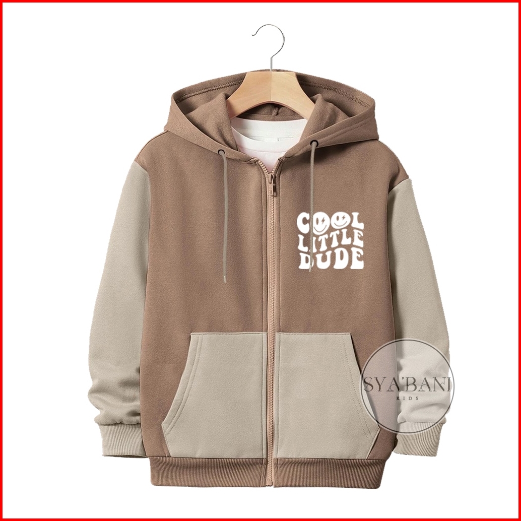Jaket Zipper Anak Laki-laki Perempuan Usia 2-13 Tahun Sablon Cool Little Kombinasi Fleece