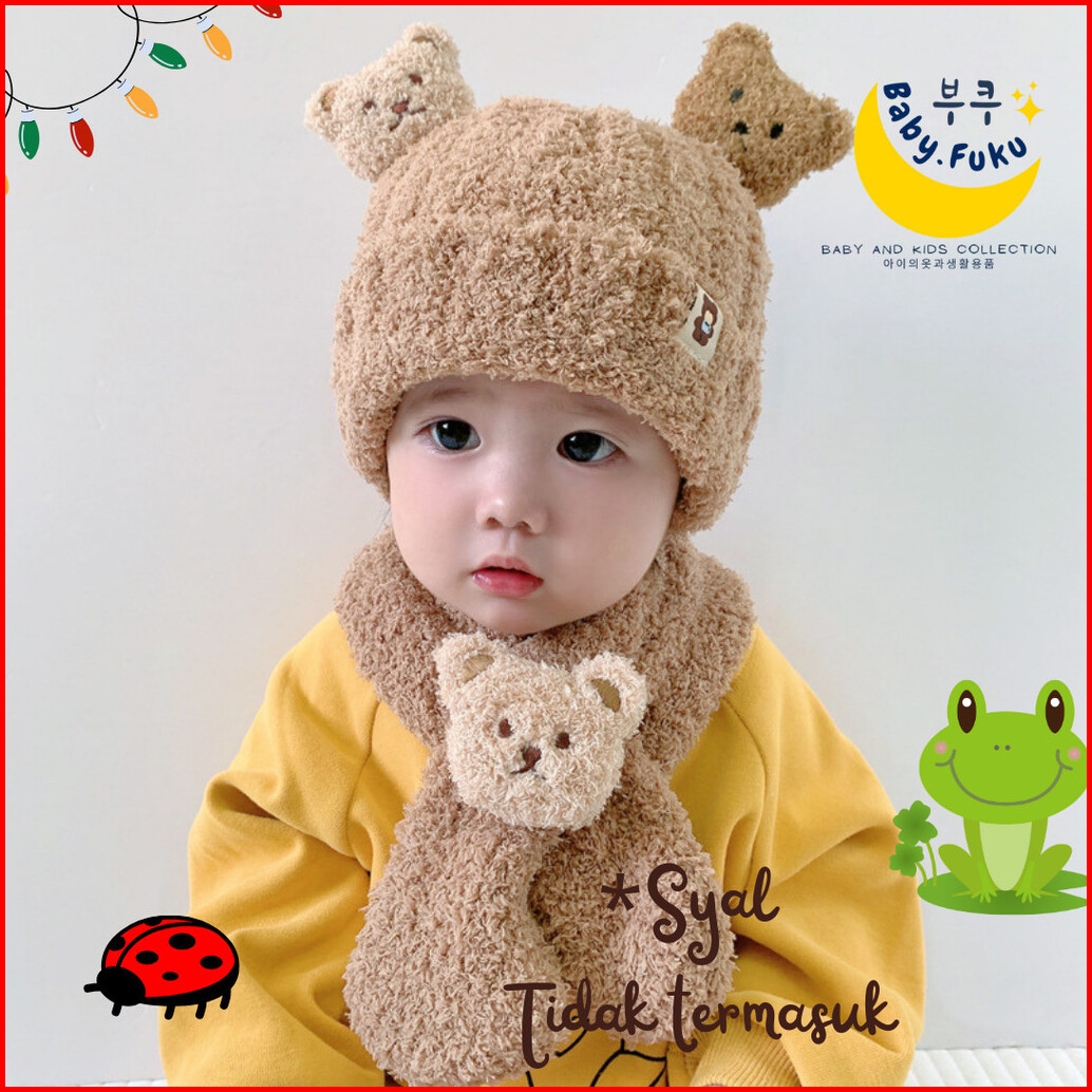 Baby.fuku Topi Kupluk Bayi Polos Model Bear Laki Laki Perempuan Usia 0-6 Bulan Umur 1 2 3 Tahun Thn Bahan Premium Halus