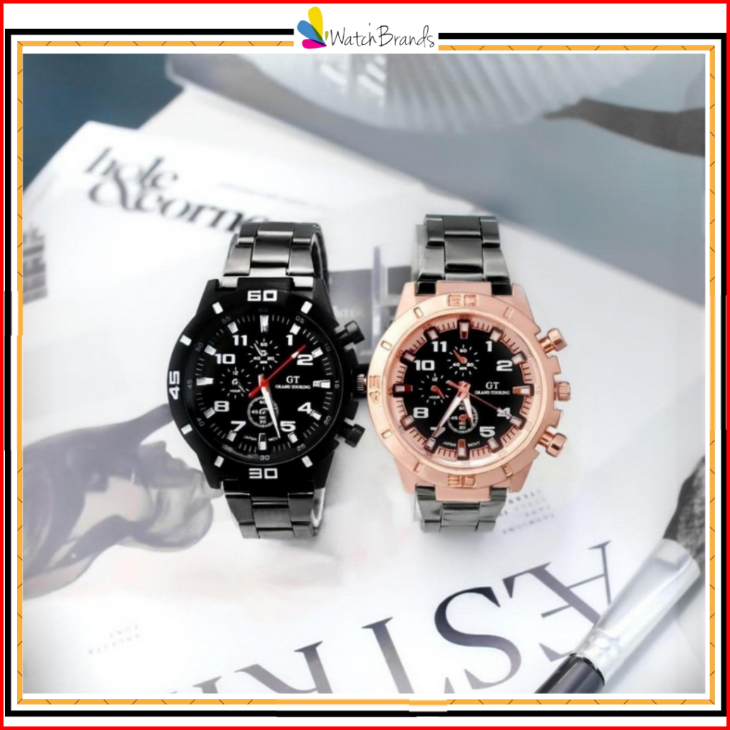 Wbs Jam Tangan Pria Gt Sport Chrono Grand Touring Rantai Stainlee Steel Korea Fashion Quartz Silikon Rubber Analog Watch