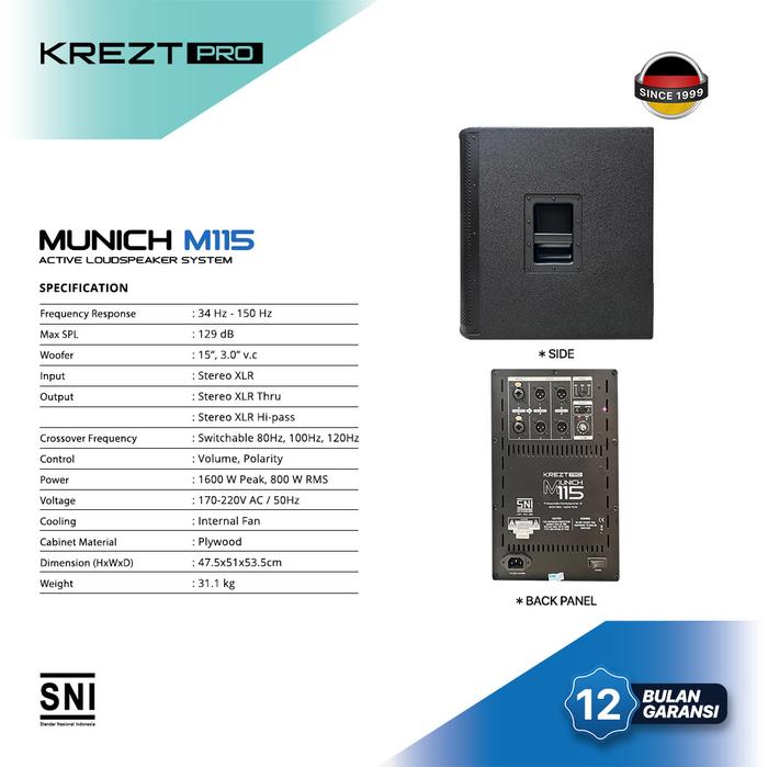 Speaker Subwoofer Aktif 15 Inch KREZT PRO Munich M115 Original Powerfull 1600W