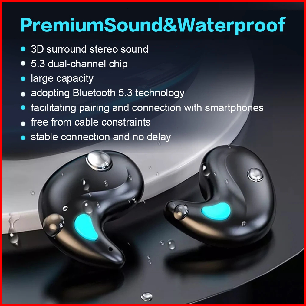 Codx55 Headphone Bluetooth Earphone Earbud Nirkabel Tak Terlihat Dengan Layar Led Headset Tidur Pengurang Kebisingan Kai