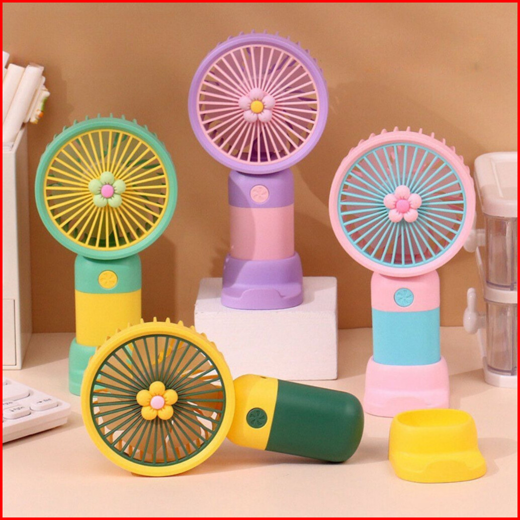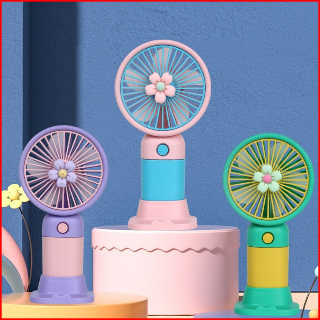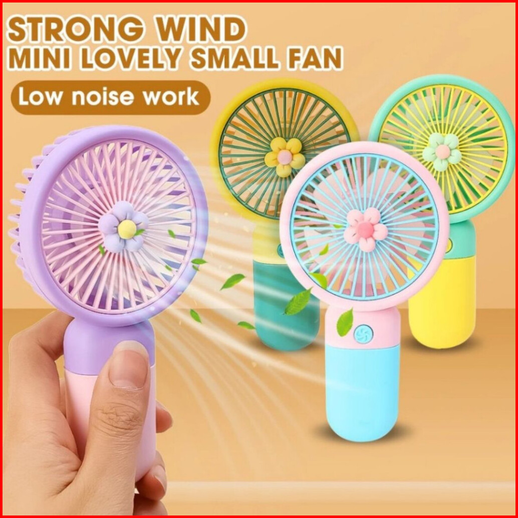 Kipas Angin Tangan Motif Bunga 2in1 Handy Mini Fan Portable Rechargeable Travel Size
