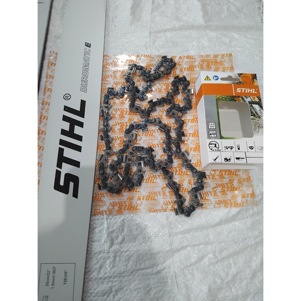 1SET/PAKET GUIDE BAR 22 INCH STIHL DAN RANTAI 72X38T STIHL UNTUK MESIN CHAINSAW