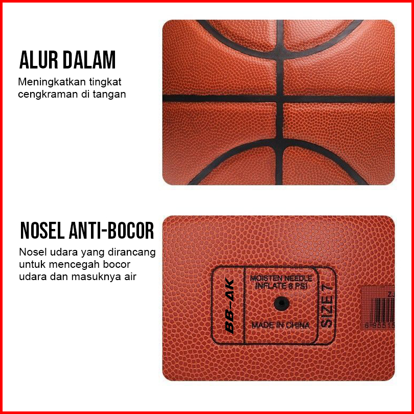 Bbak Bola Basket Bahan Pu Karet Size 7 - Ukuran Dewasa Dan Anak-anak Untuk Latihan Outdoor Free Pompa Pentil Jaring