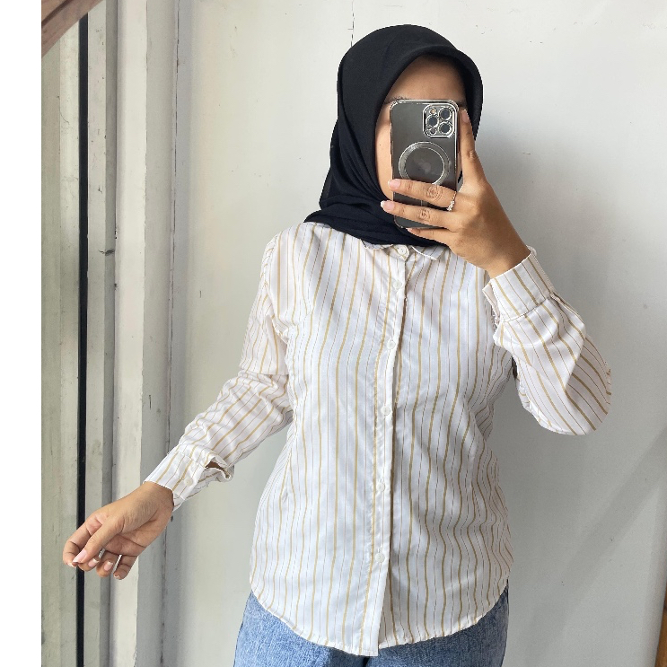 Wispie Girl Boss Fitted Shirt - Kemeja Stripe Garis - kemeja kerja wanita - kemeja garis stripe karet - kemeja stripe sl