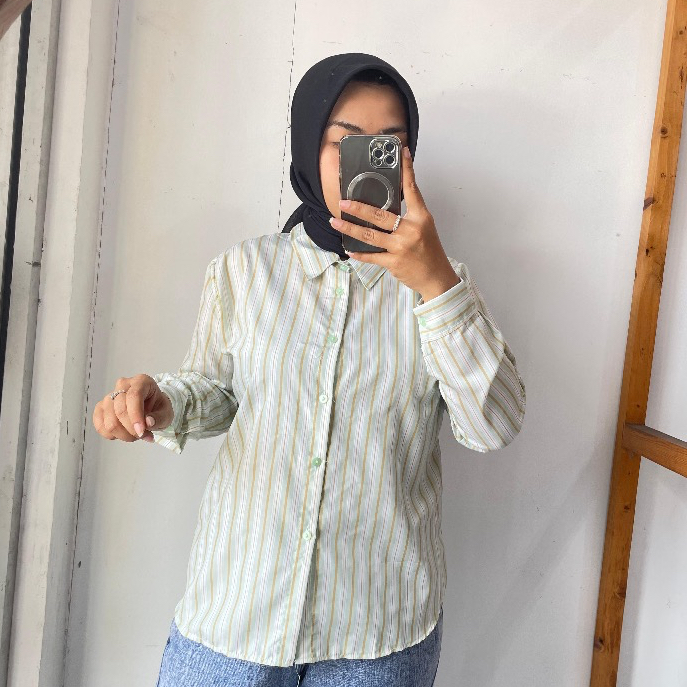 Wispie Girl Boss Fitted Shirt - Kemeja Stripe Garis - kemeja kerja wanita - kemeja garis stripe karet - kemeja stripe sl