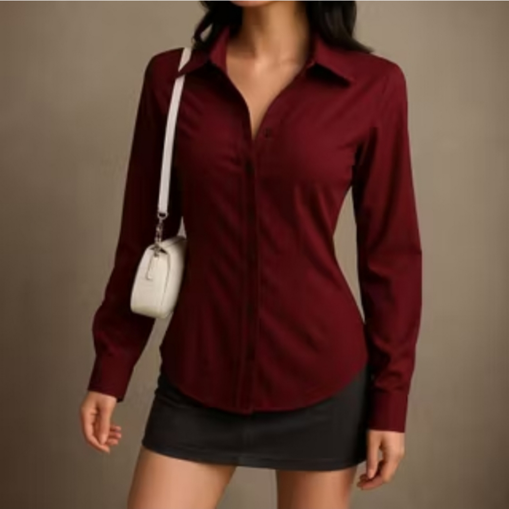 Kemeja Kerja Wanita Kemeja Wanita Lengan Panjang Blouse Wanita Slim Fit Long Sleeve