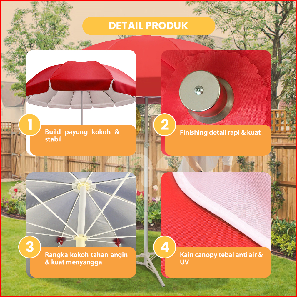 Rumaku Payung Jumbo Jualan 200 Cm Tenda Dagang Kanopi Parasol Booth Event Taman Pantai Bazar Cafe Anti Uv