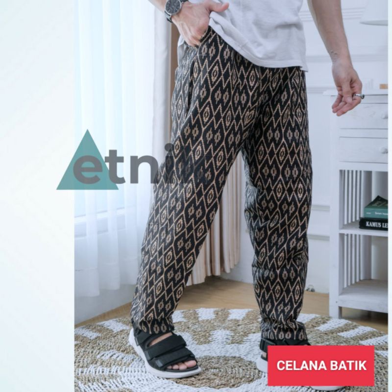 Celana batik songket coklat kolor boim harian santai pakaian tidur ukuran pria wanita pinggang elastis