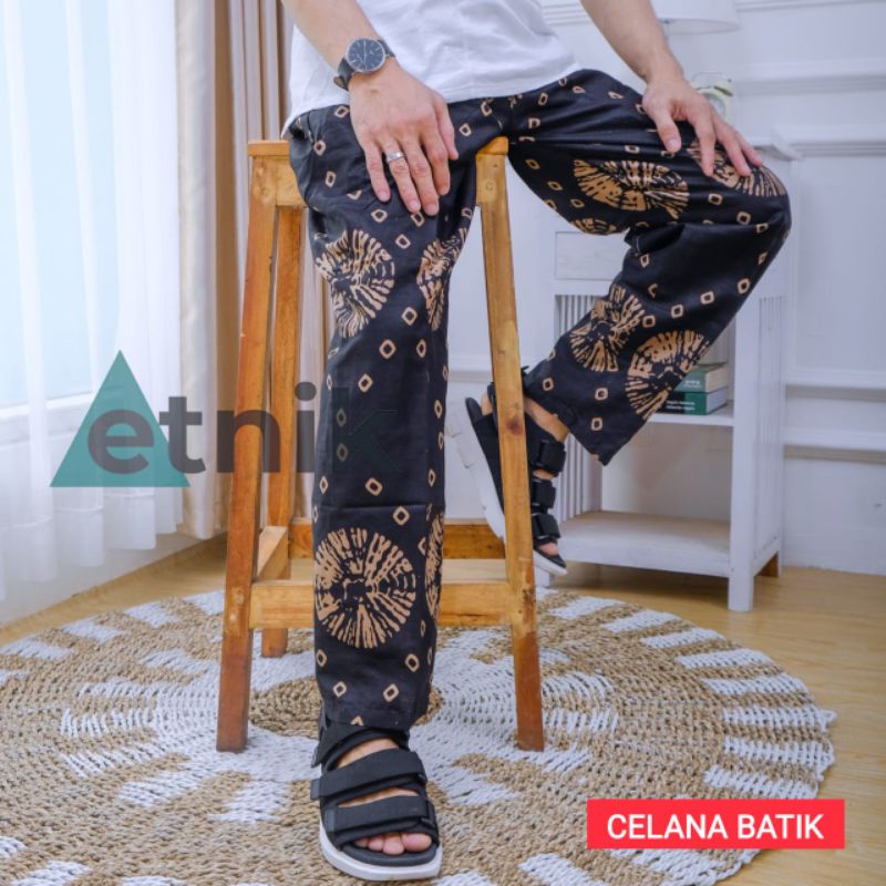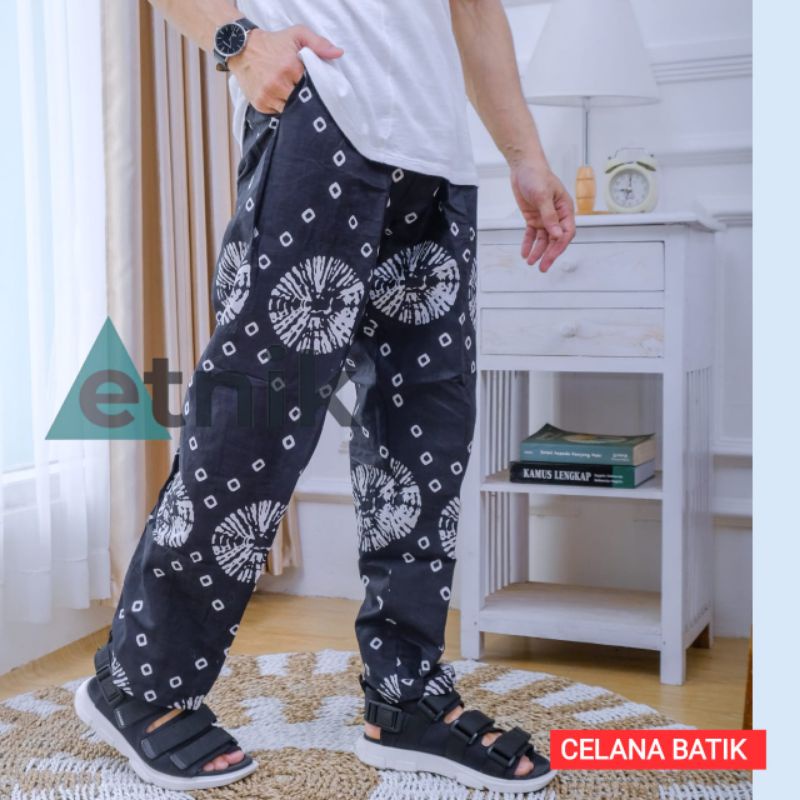Celana batik kolor harian santai panjang ukuran pria wanita dewasa motif batik pinggang elastis