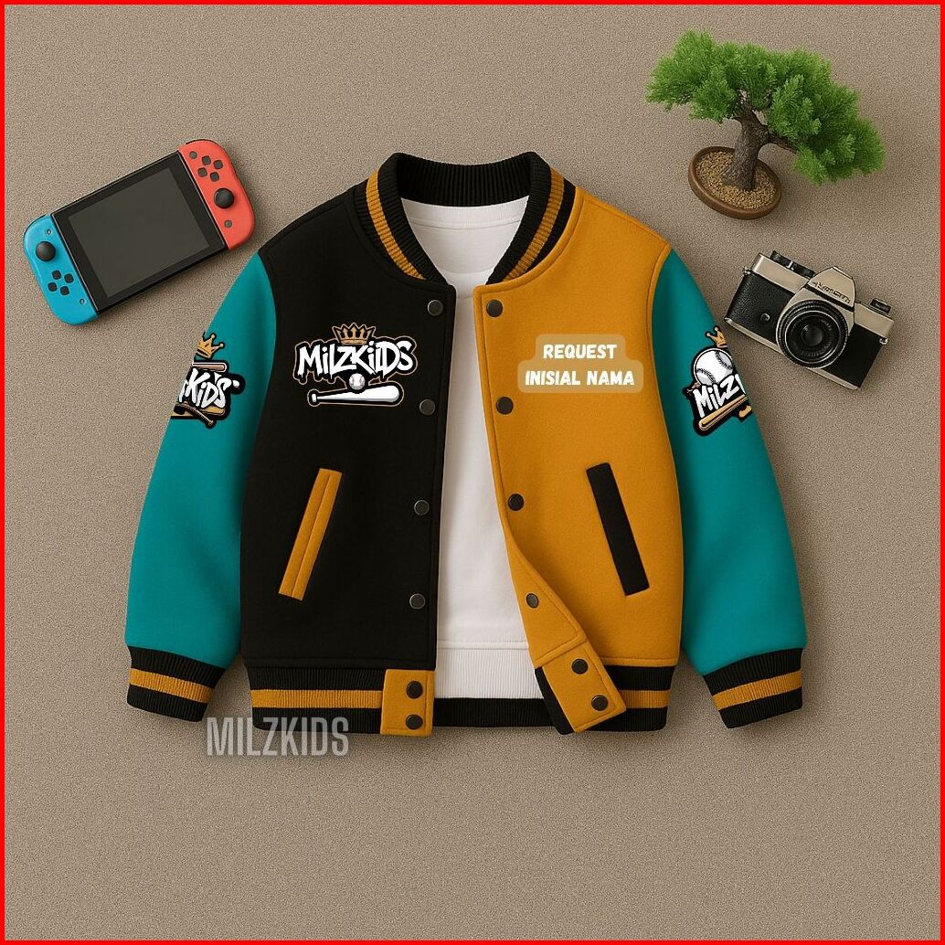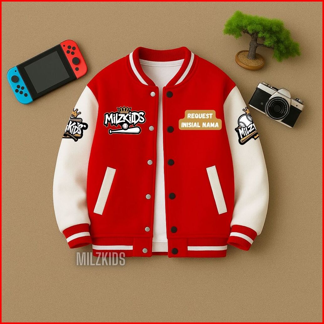 Milzkids Jaket Varsity Baseball Anak Custom Inisial Nama Usia 2 - 12 Tahun Spesial Edition