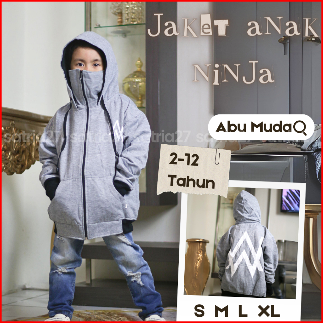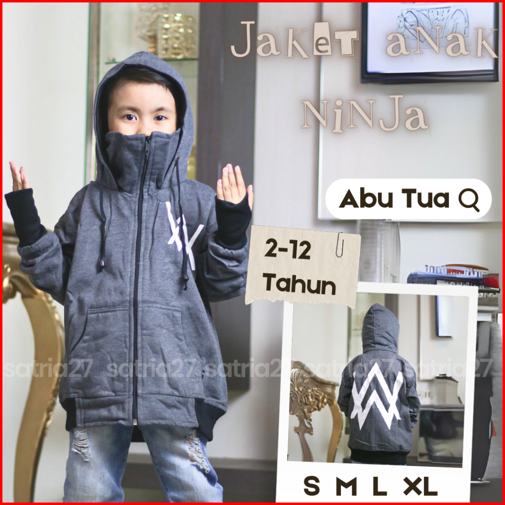 Jaket Zipper Ninja Anak Roundhand Sweater Hoodie Sablon Kekinian Terbaru Bahan Fleece Usia 2tahun Sampai 12tahun Laki La
