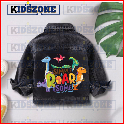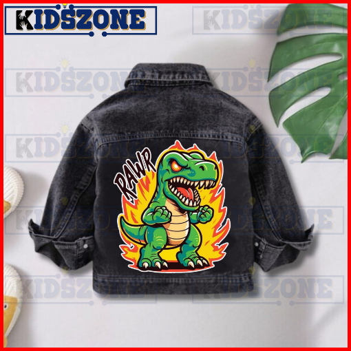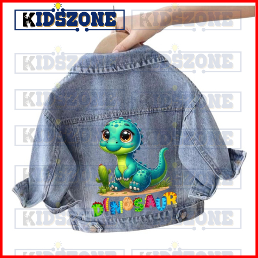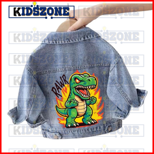 Jaket Jeans Anak Karakter Dinosaurus Snow Blue Black 1-7 Tahun