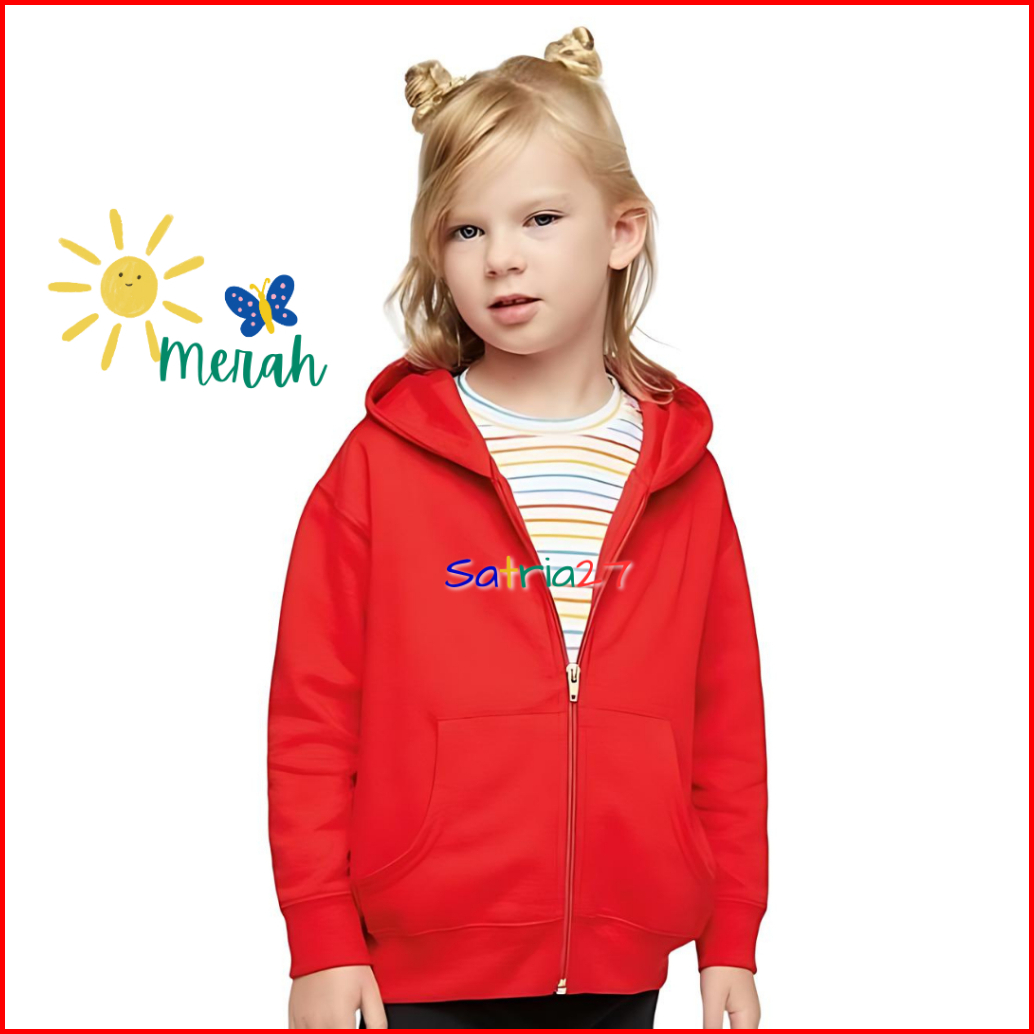 Jaket Anak Zipper Sweater Hoodie Polos Kekinian Terbaru Bahan Fleece Usia 2tahun Sampai 12tahun Laki Laki Perempuan