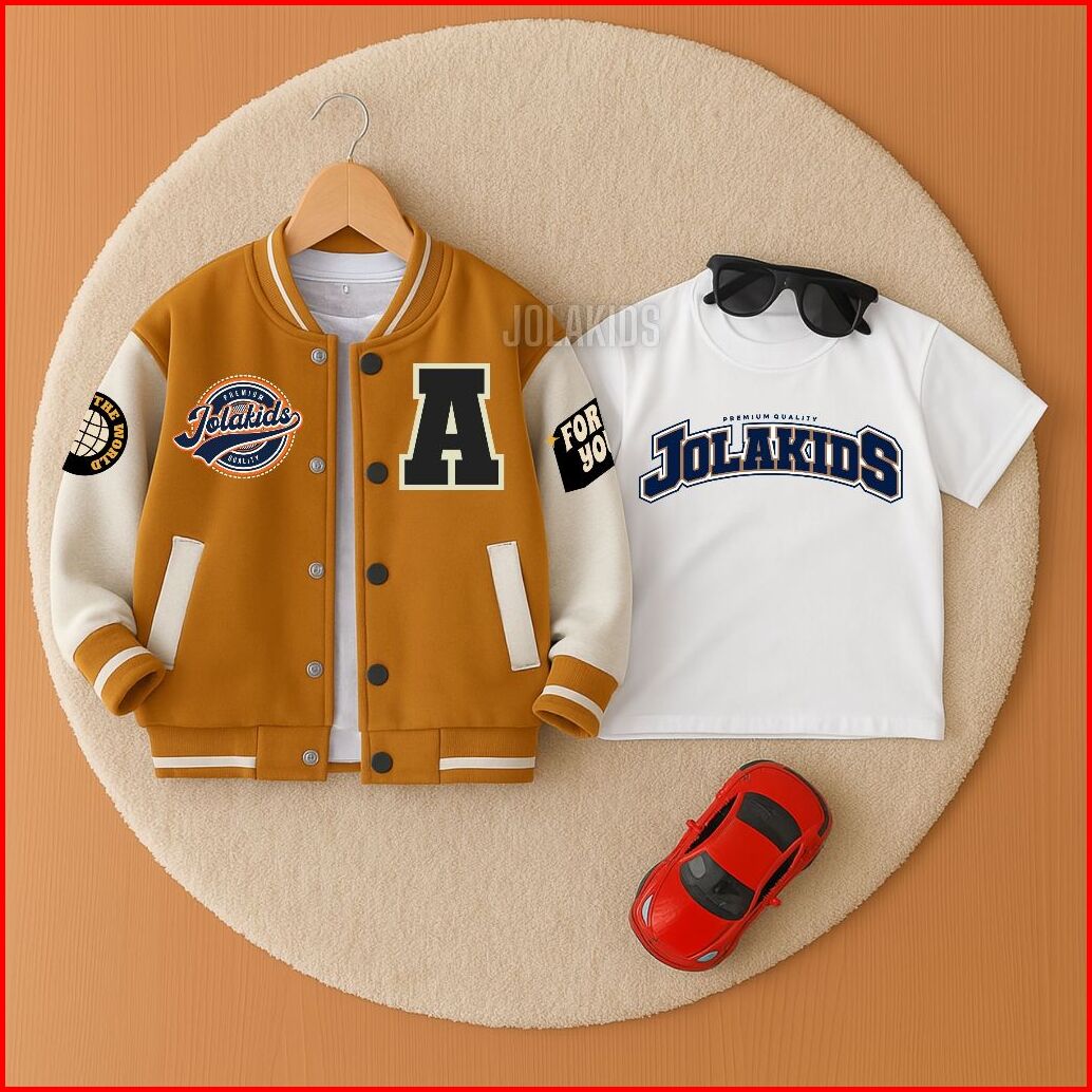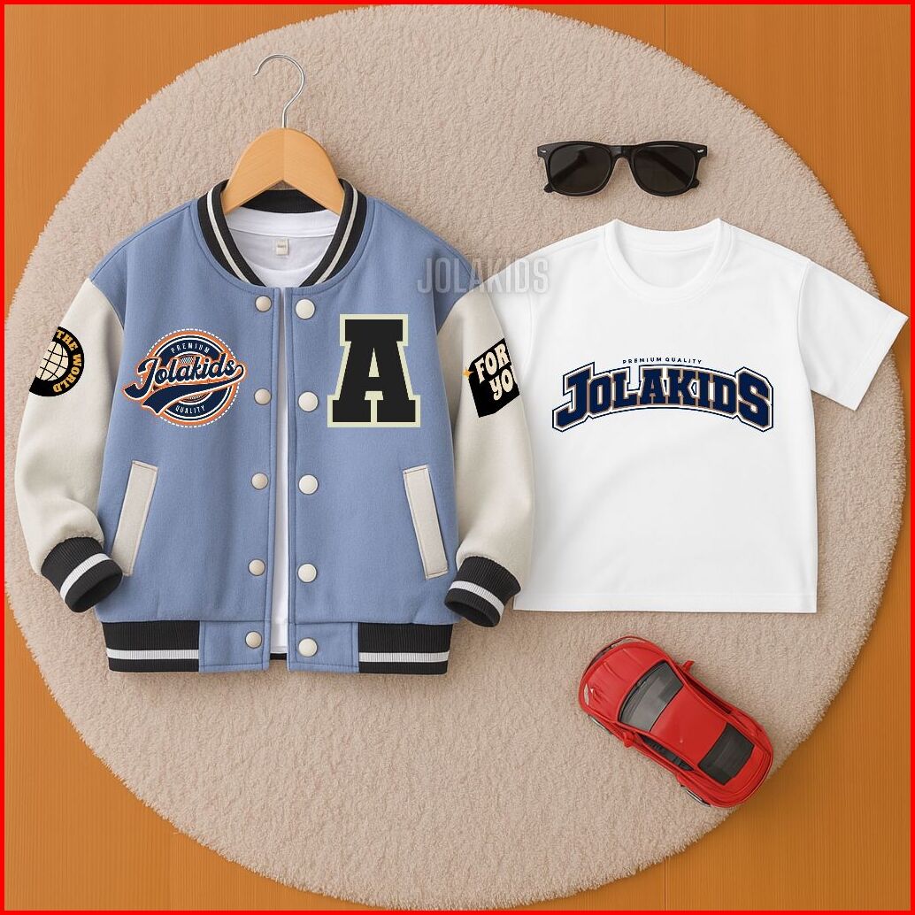 Jolakids Jaket Anak Laki Laki Perempuan Varsity Baseball Inisial A-z Usia 2 - 12 Tahun Free Kaos