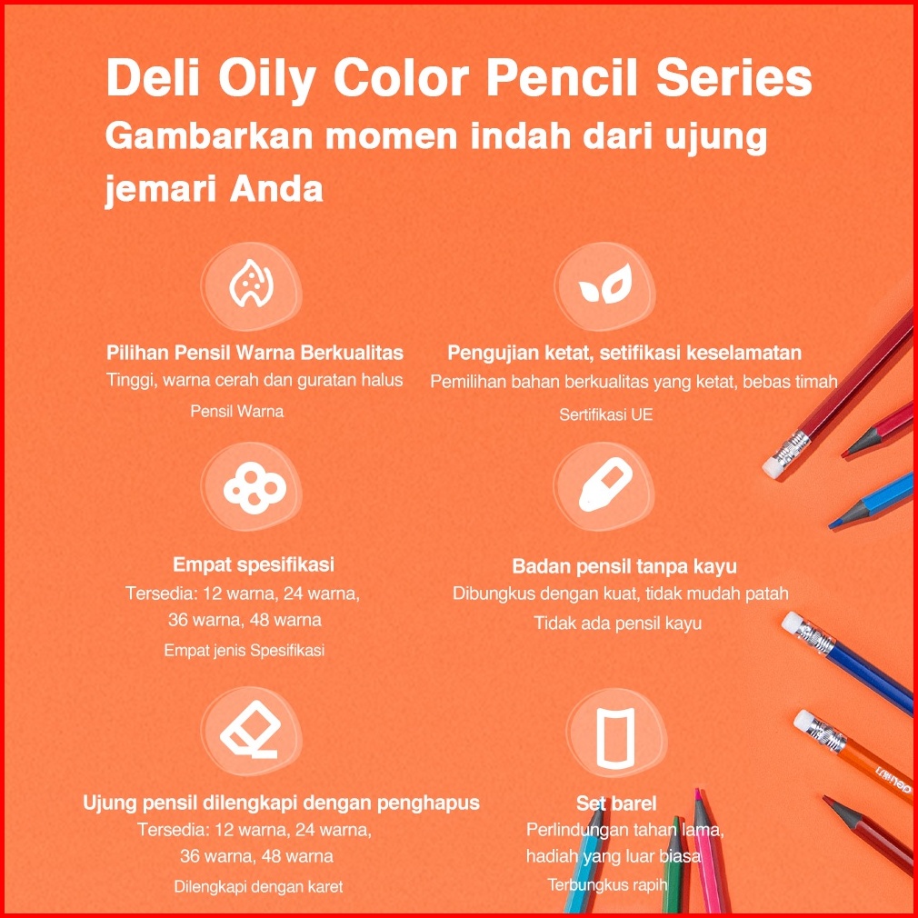 Deli Erasable Colored Pencil Pensil Warna Dapat Di Hapus Warna Terang 7073