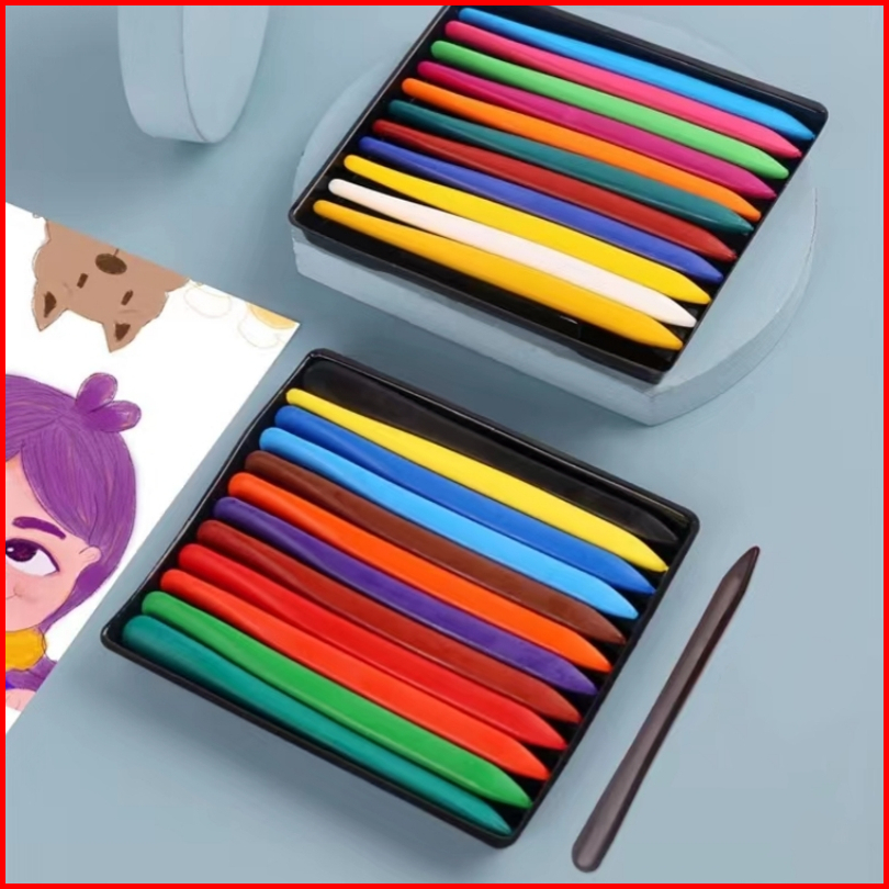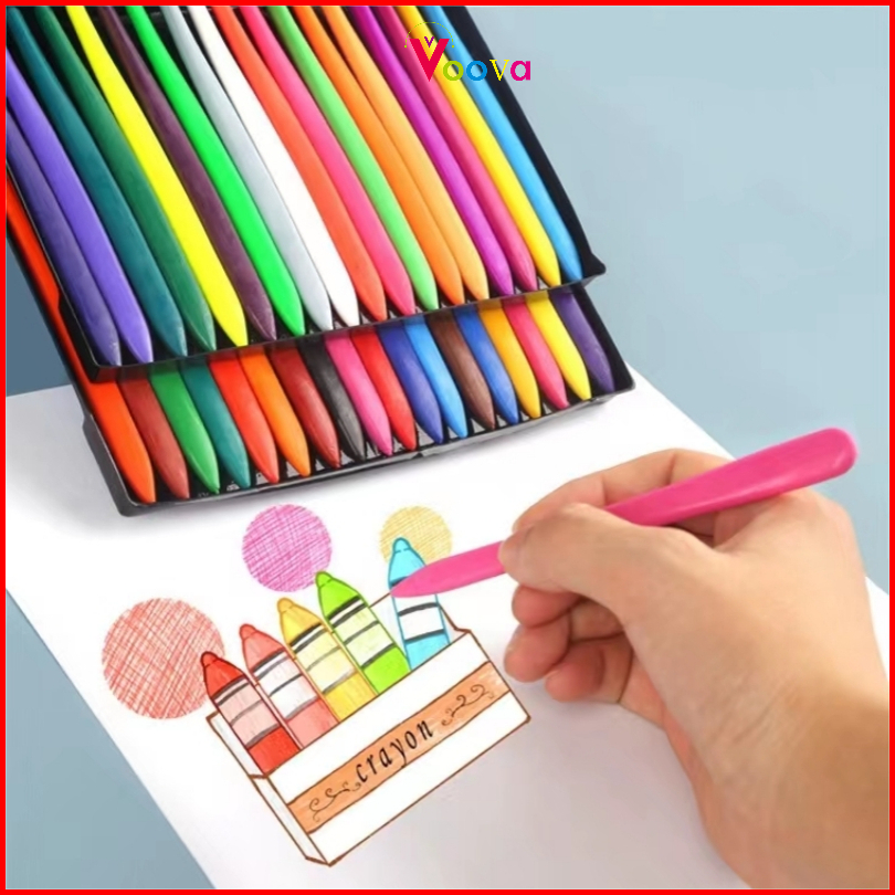Voova Plastic Crayon 6 12 24 36 Warna Cerah Bentuk Segitiga Ergonomis Tidak Beracun Bisa Dicuci Set Krayon