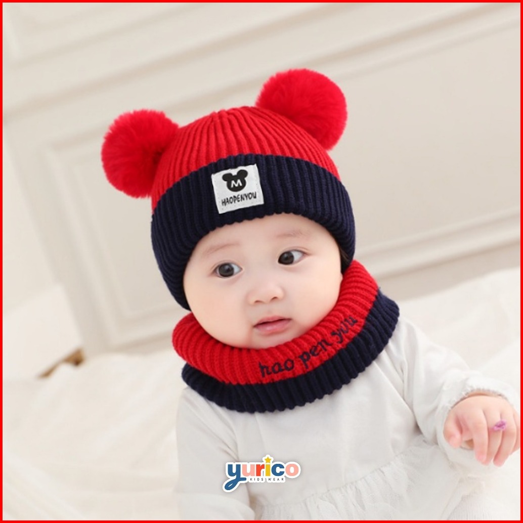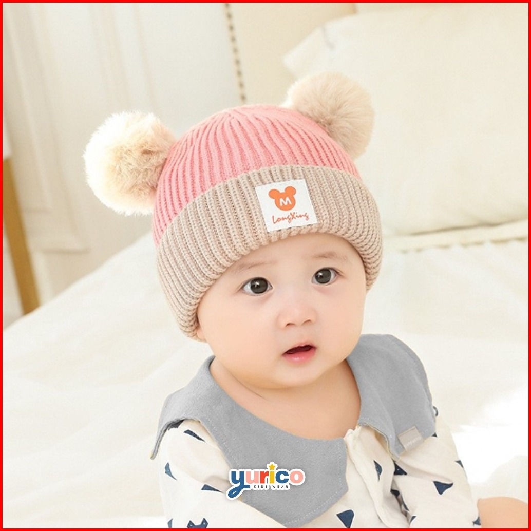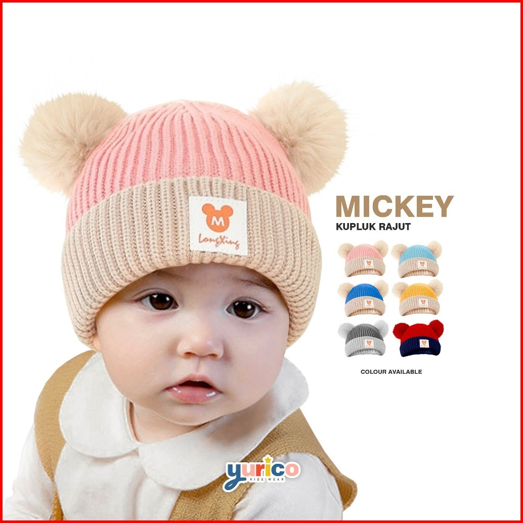 Topi Kupluk Rajut Bayi Pompom Mickey Laki Laki Perempuan