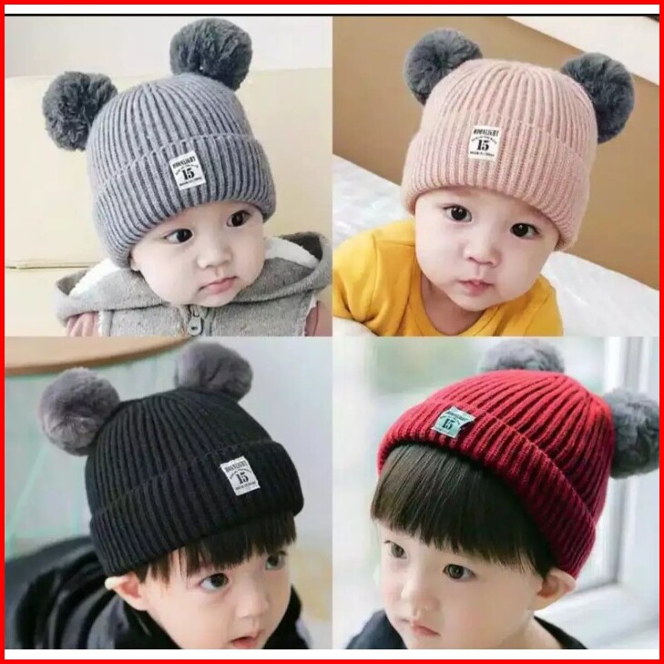 Kupluk Bayi Model Pompom Premium Pom02 Rajut