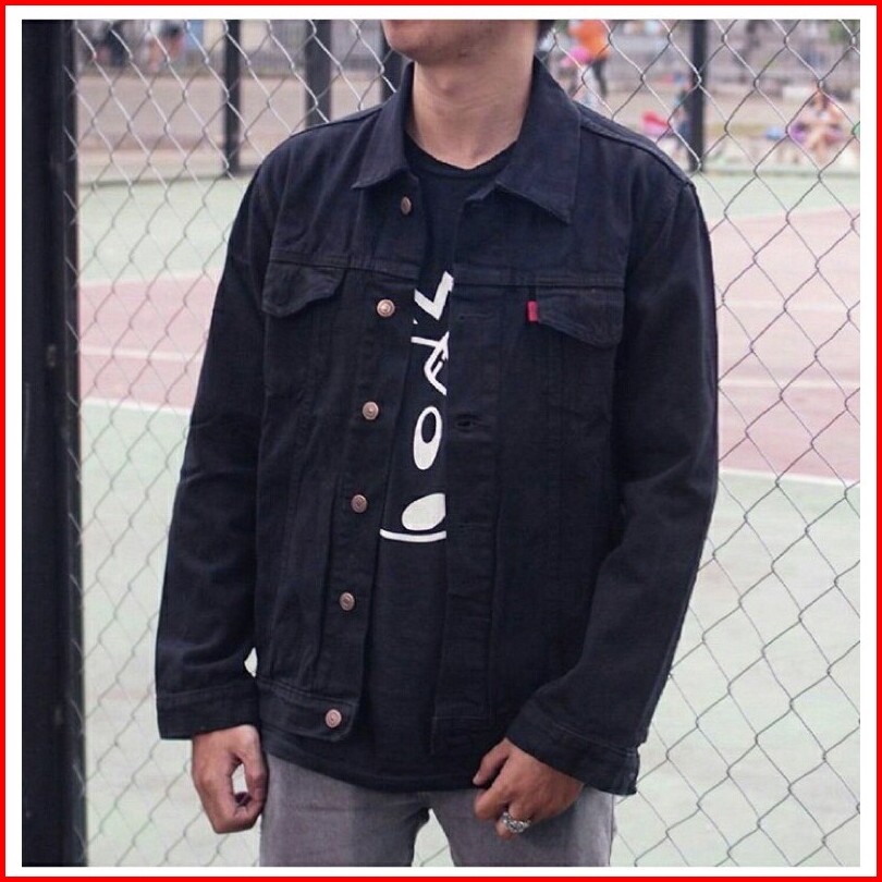Jaket Jeans Oversize Bio Blitz Bio Wash Blue Black Hitam Bio Blue Bio Pudar