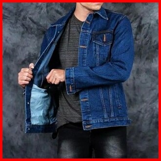 Jaket Jeans Pria Denim Cowok Pria Biru Tua Biowash M - Xl Terbaru Terlaris Terpopuler Premium