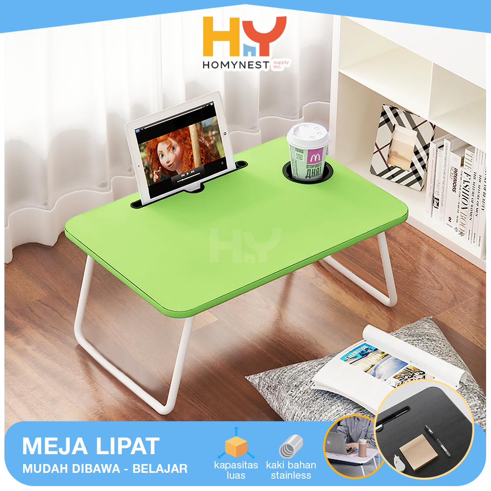 HOMYNEST Meja Lipat Belajar Anak Portable Lesehan Holder Tablet Meja Laptop Kasur Kecil Serbaguna
