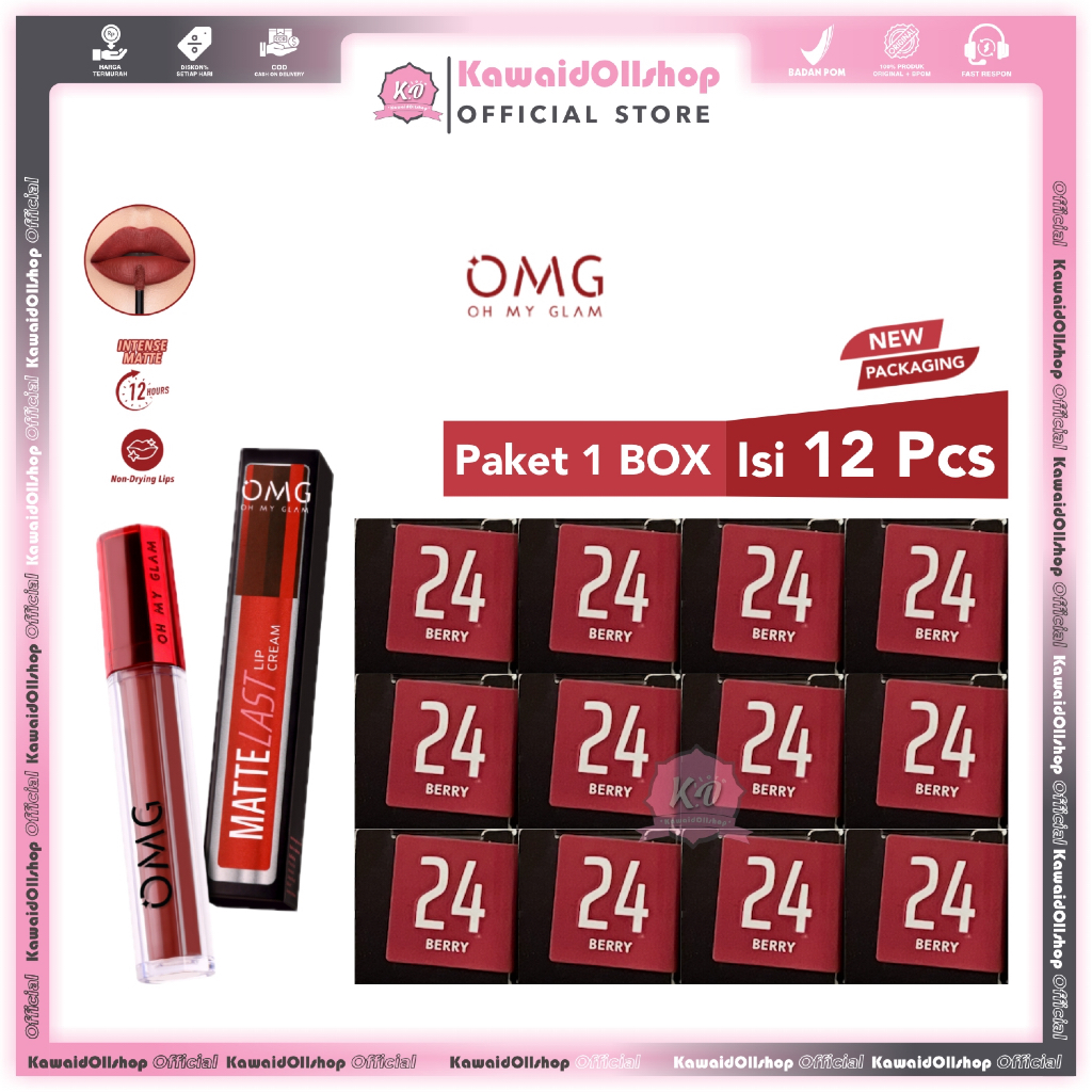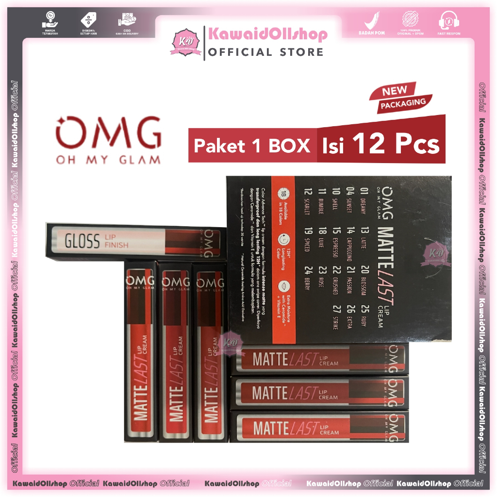 OMG Oh My Glam Mattelast Lip Cream / Lipstick Paket 1 Box Isi 12 Pcs | Tahan Lama /Lusin