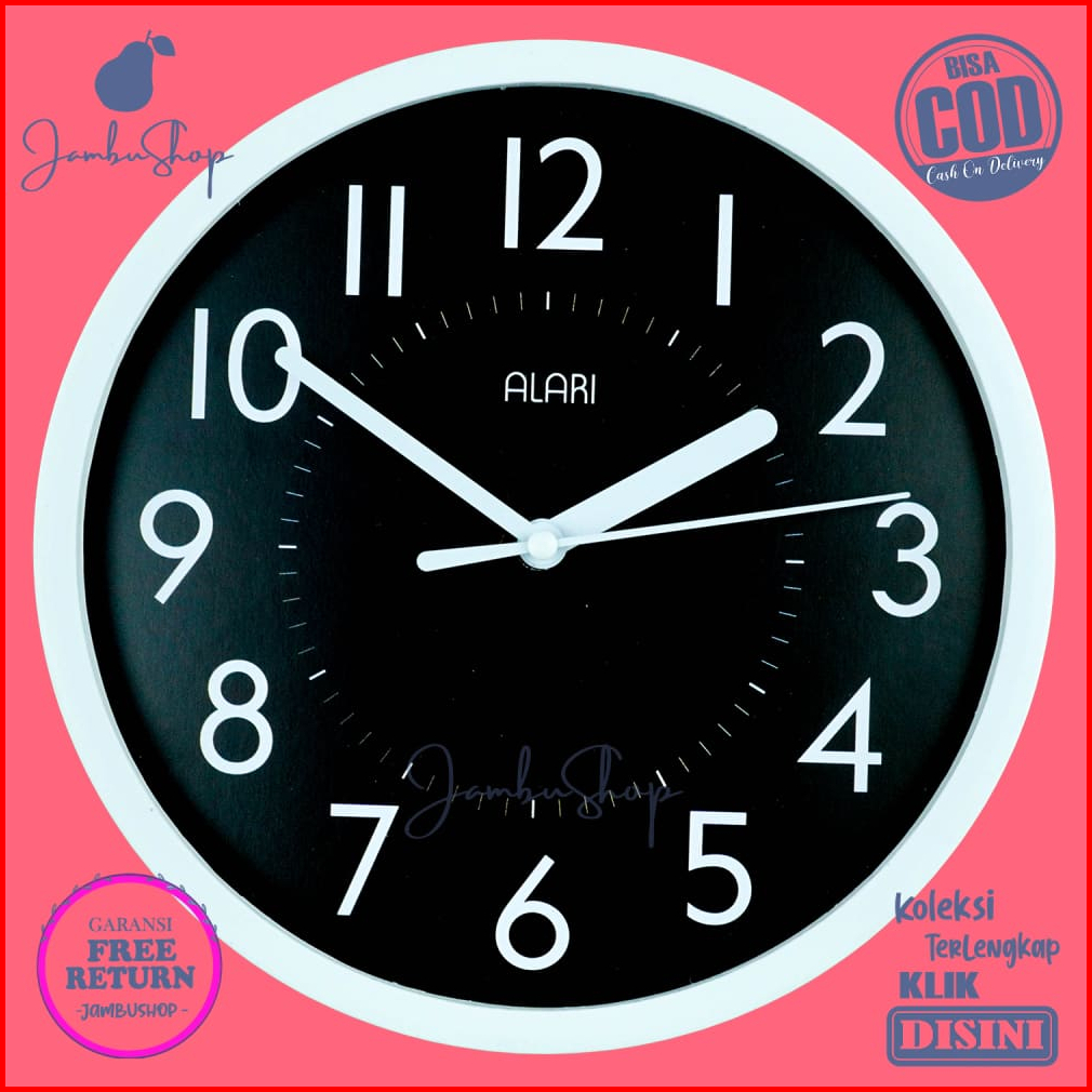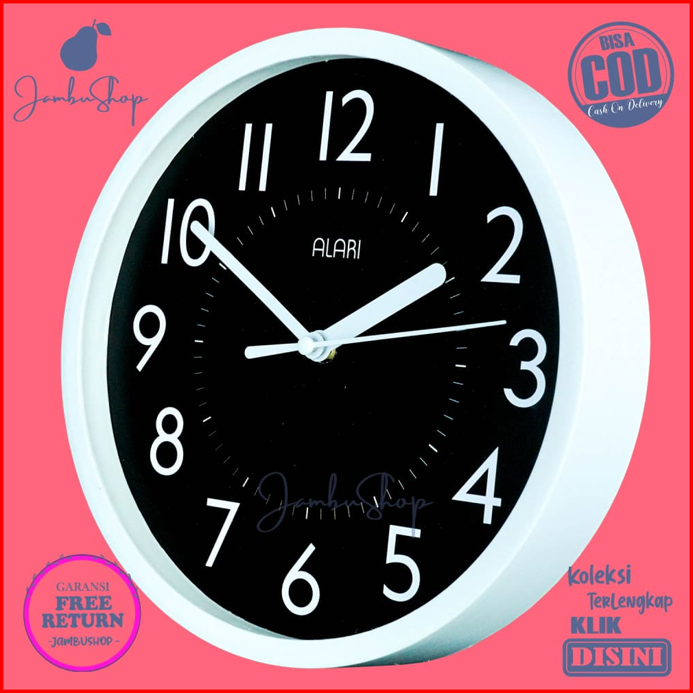 Jam Dinding Alari Al1209-1668 Minimalis Quartz Minimalis Hitam Hiasan Kamar Bestseller