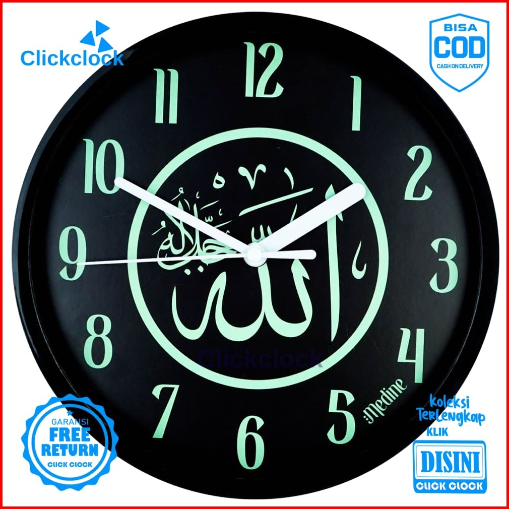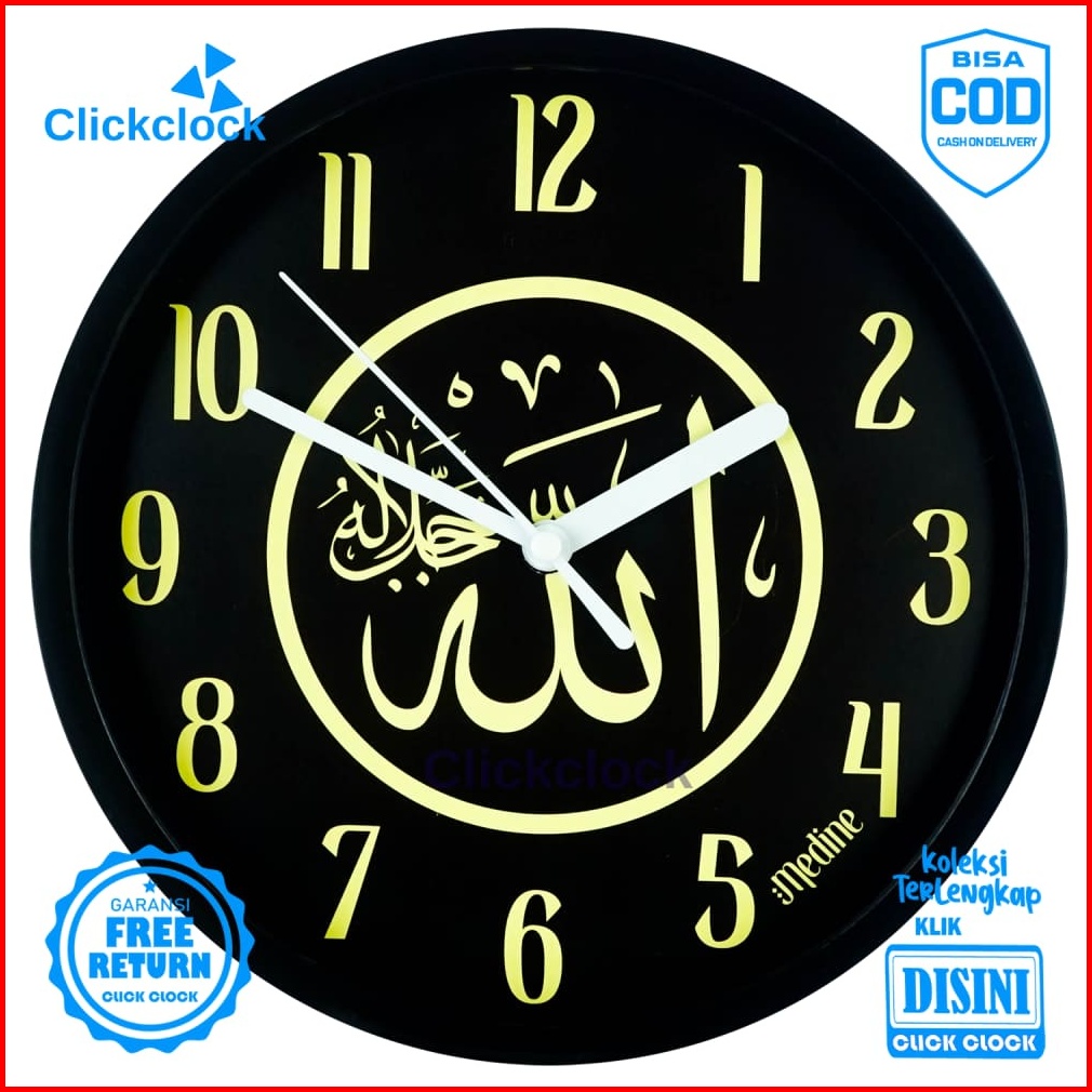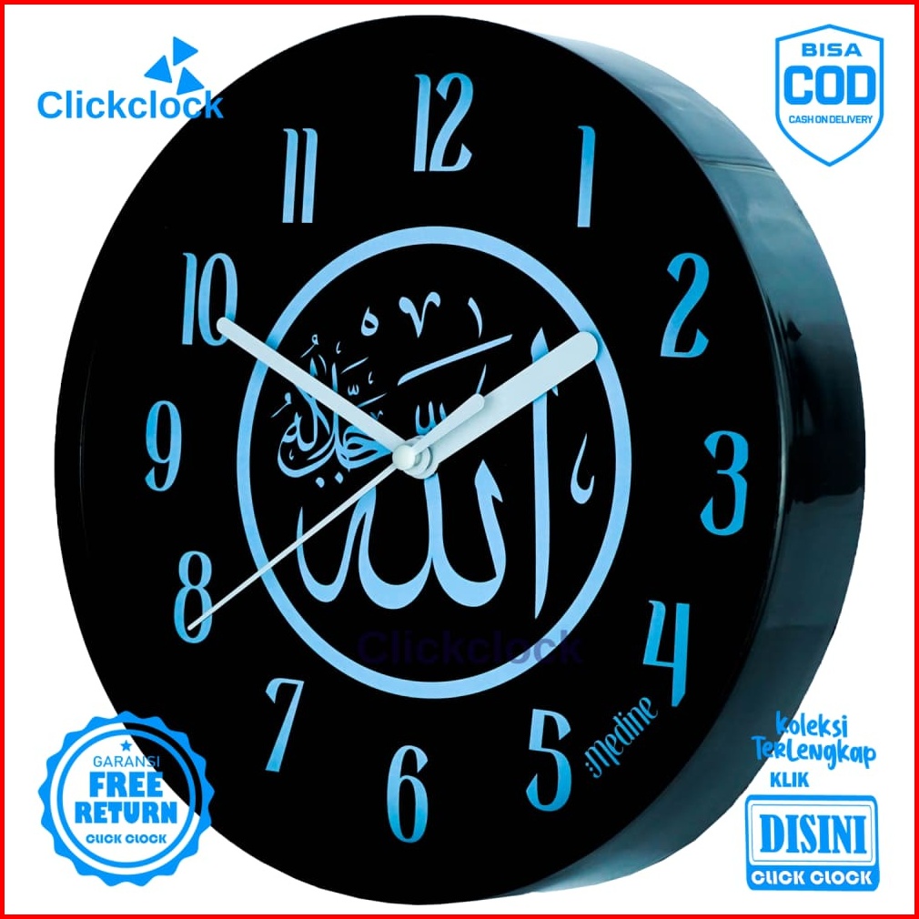 Jam Dinding Analog Kaligrafi Arab Biru Medine 1181-1668 Besar Hiasan Rumah Murah