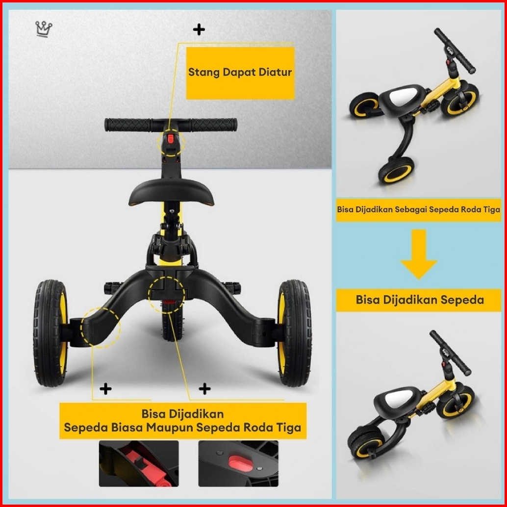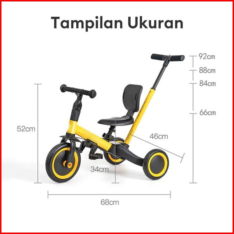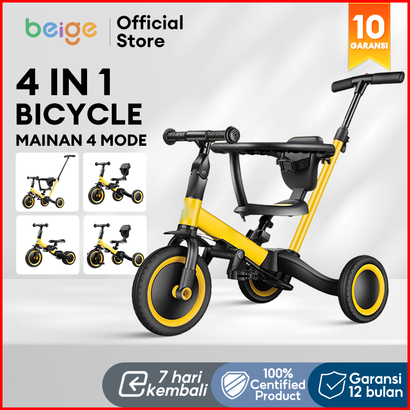 Beige Sepeda Anak Roda 3 2in1 Balance Bike Push Bike Keseimbangan Usia 1-5 Tahun Aman