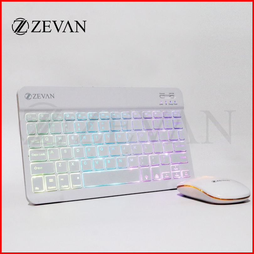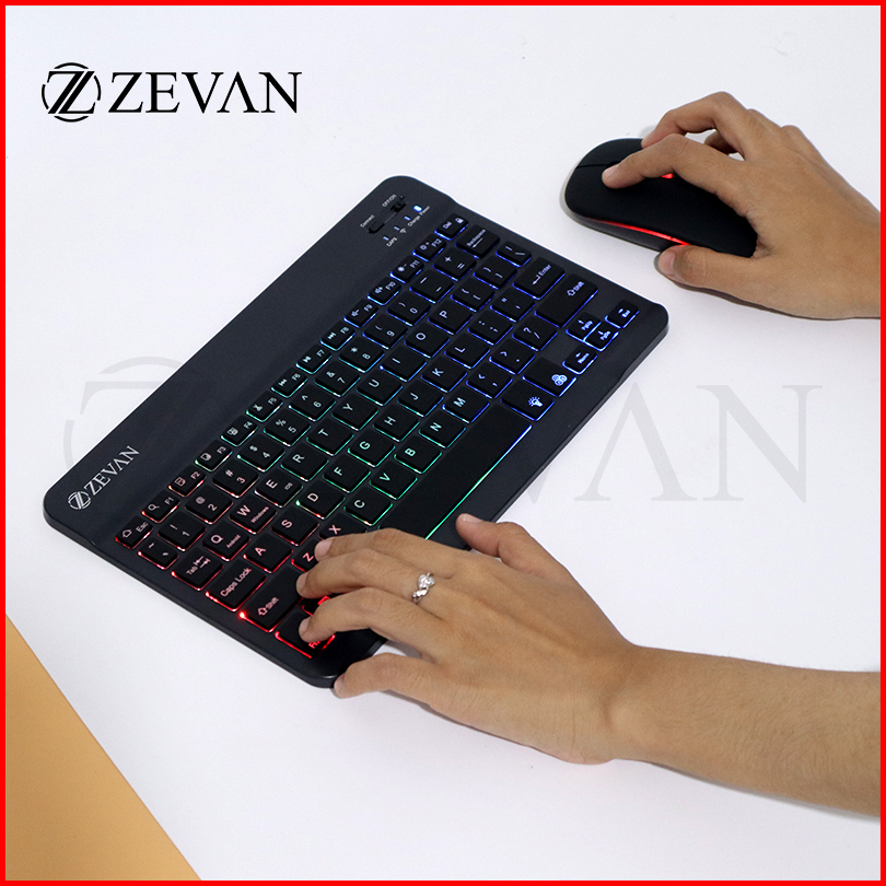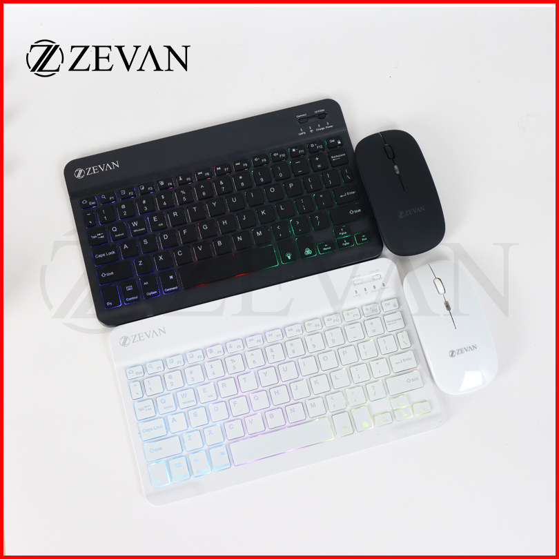 Zevan Keyboard Mouse Combo Set Wireless Bluetooth Led Touchpad 10 Inch For Laptop Pc Tablet Mobile Phone