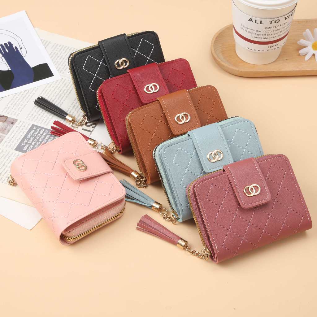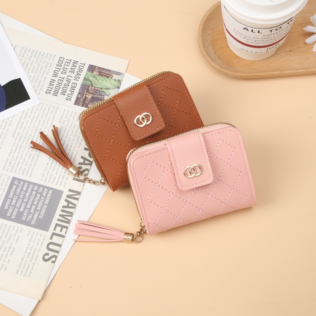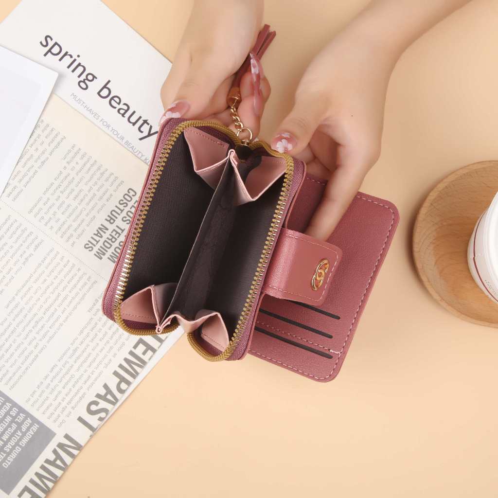 MKS Dompet Lipat Mini Wanita Dompet Wanita Kecil Koin Bahan Kulit PU Leather Premium
