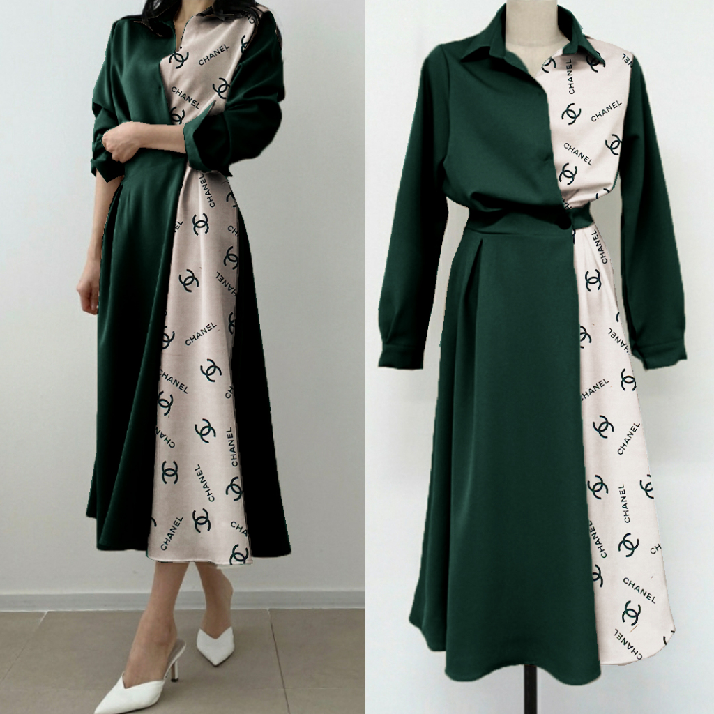 Dress Wanita Kekinian Dress Korean Style Batik Nakila Nala Baju Lebaran Tangan Panjang Motif FWG
