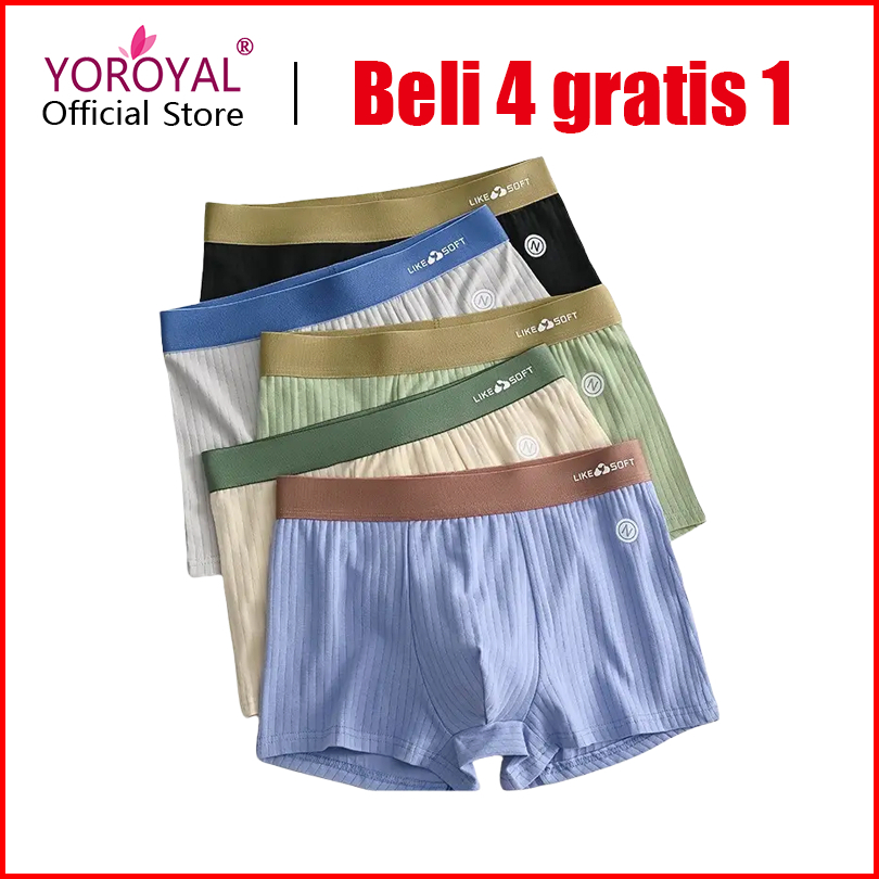 Yoroyal Paket Hemat 5 Pcs Cd Boxer Pria Katun Plus Size Celana Boxer Pria Celana Dalam Laki Laki Bahan Katun