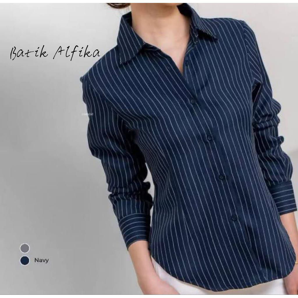 Kemeja Atasan Wanita Motif Salur Garis Stripe - Kemeja Wispie Stripe Fitted - Luna stripe Kemeja Wanita Fitted Slim fi