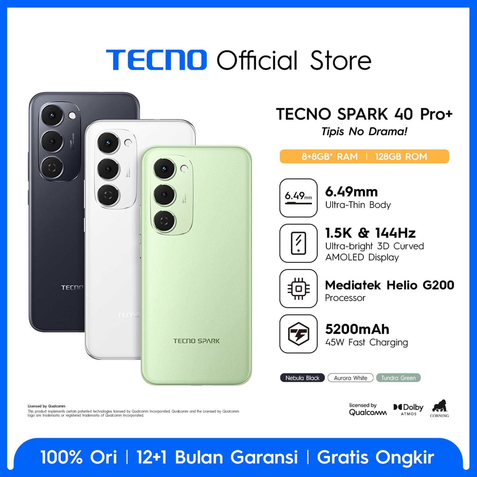 TECNO SPARK 40 PRO+ 8/128GB 144Hz 3D Curved AMOLED 5200mAh 45W Fast Charging IP64 - tecno spark40plus spark 40 plus