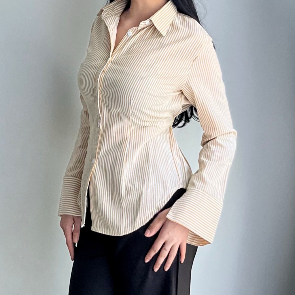 Disa top by Landzie Kemeja Wispie | Shirt Wanita Ngantor | Atasan Wanita Kemeja | Kemeja Kerja Wanita Press Body Pinstri