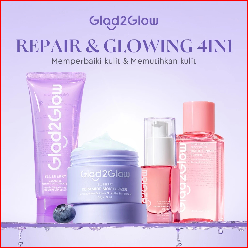 Set Repair Glowing Glad2glow Glowing Sehat Lembap Bundle 4in1-blueberry Moisturizer Cerah Krim Brightening Serum Pulihka
