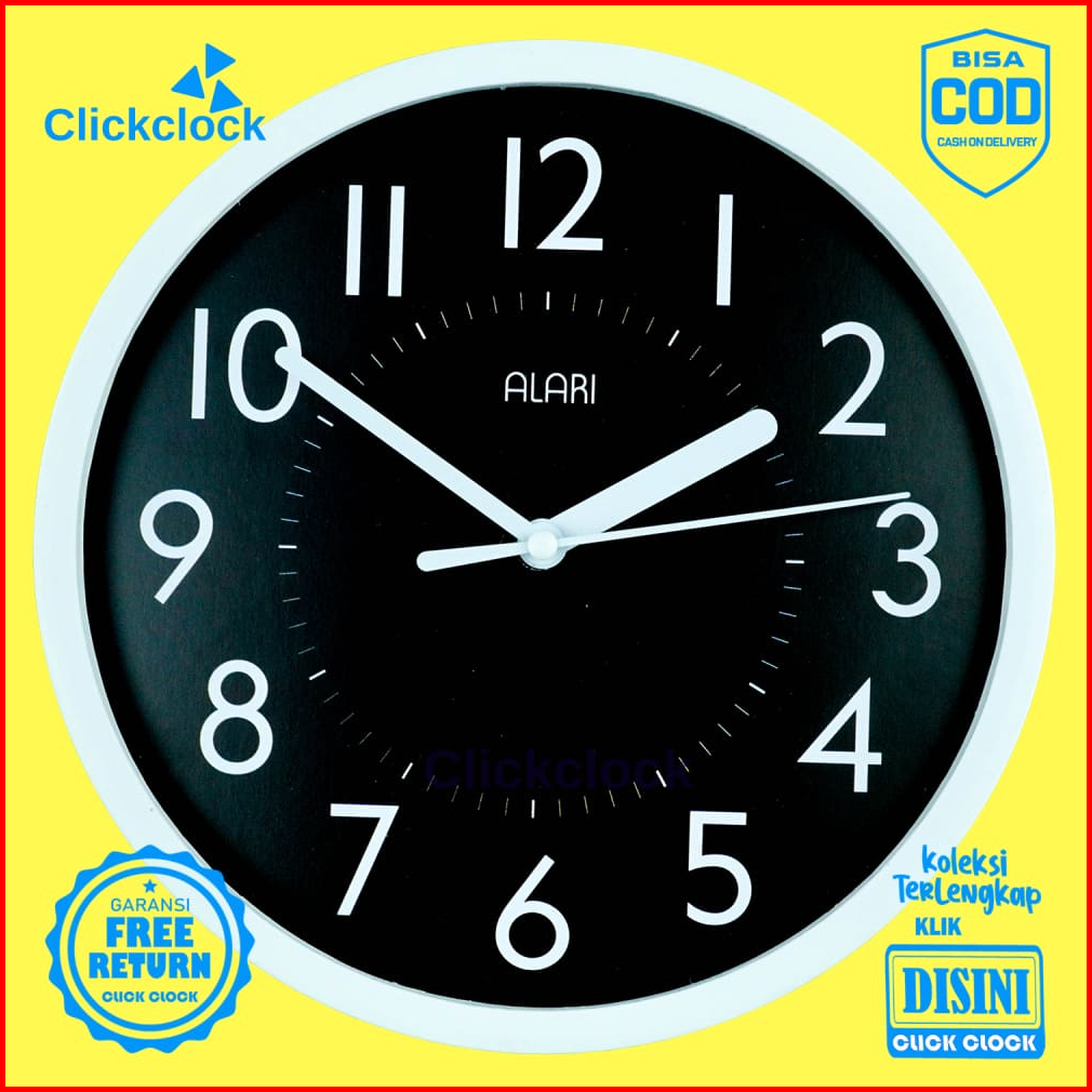 Jam Dinding Alari Al1209-1668 Minimalis Analog Minimalis Hitam Besar Dekorasi Kamar Murah