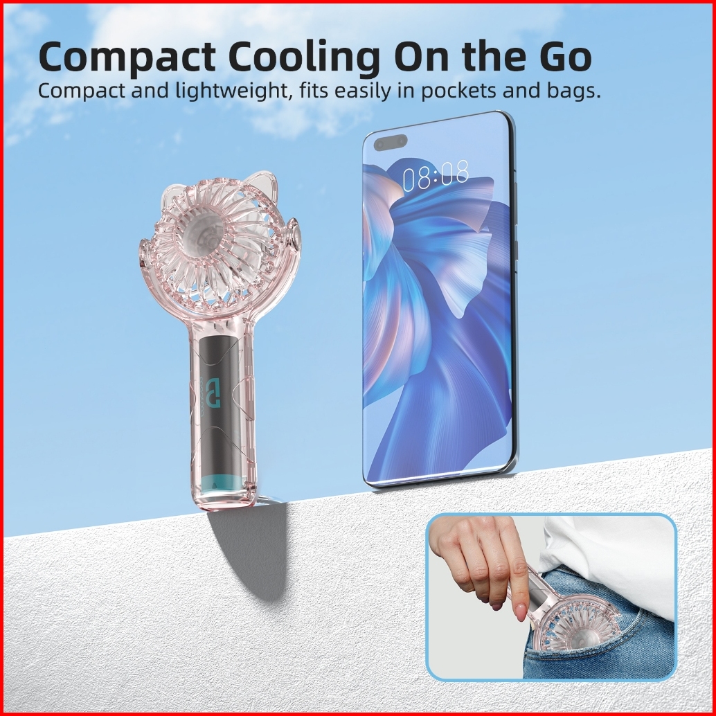 Goojodoq 3000mah Kipas Angin Akrilik Transparan 330 Rotatable Kipas Mini Genggam Cute Kipas Lipat Portable Mini Fan