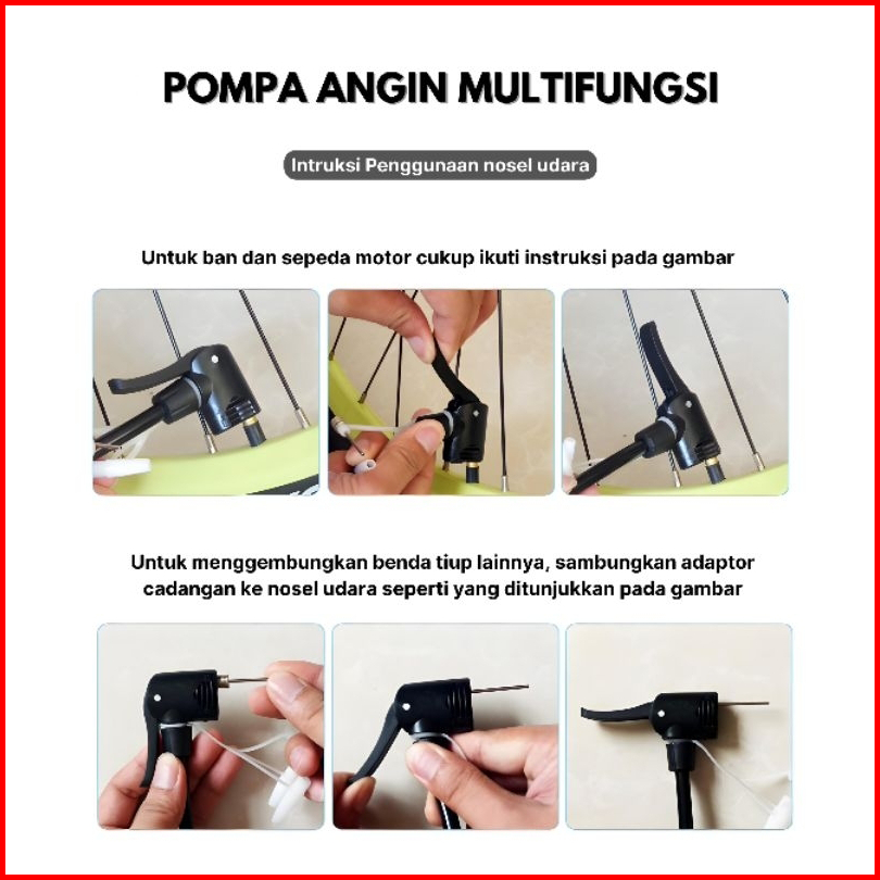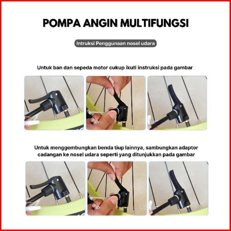 Pompa Angin Ban Sepeda Dan Motor Kompa Sepeda Meter Tekanan Manual Dual Pentil Alloy