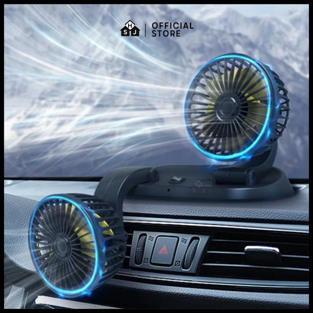 Kipas Angin Mobil Kipas Angin Mobil 2 Kepala 12 Volt / Kipas Pendingin Mobil Truck Kipas Dashboard Mobil Multifungsi 360
