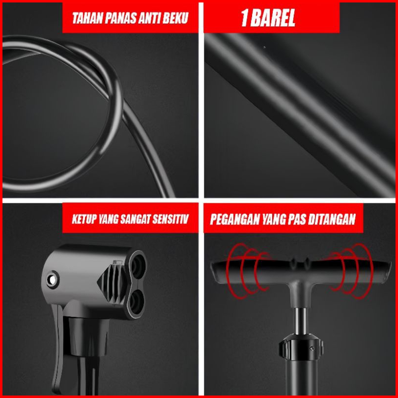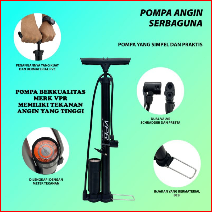 Pompa Angin Ban Sepeda Dan Motor Kompa Sepeda Meter Tekanan Manual Dual Pentil Alloy