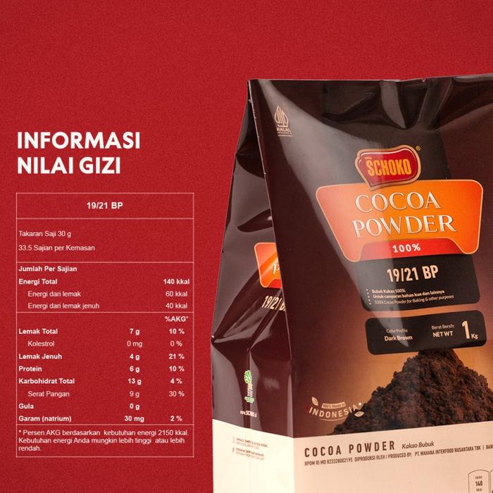 Coklat Bubuk Schoko Cocoa Powder BP 19/21 1kg Pack ASLI Coklat Bubuk Murni Cokelat Pure Cacao