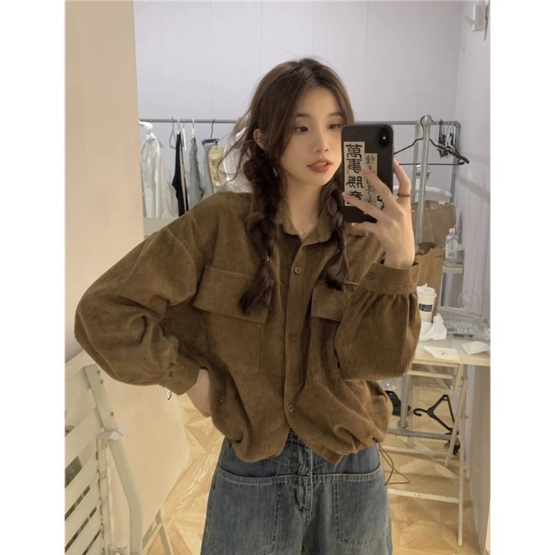 Jaket korduroi pendek Wanita Korea Style Polos Lengan Panjang Baju Atasan Wanita Kekinian Premium Atasan Corduroy