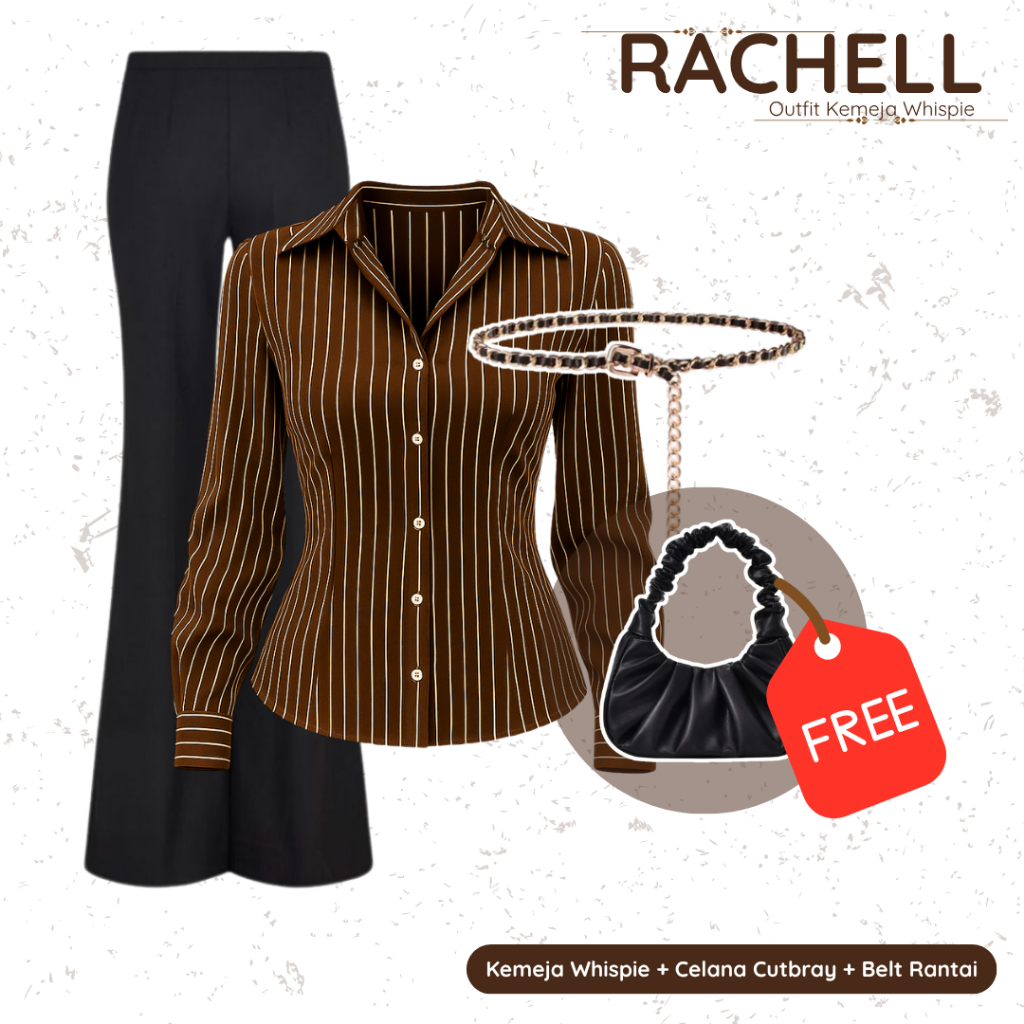 OOTD Kemeja Whispie Viral | Set Kemeja Slimfit Coklat + Celana Cutbray Scuba + Belt Rantai | Chiky02